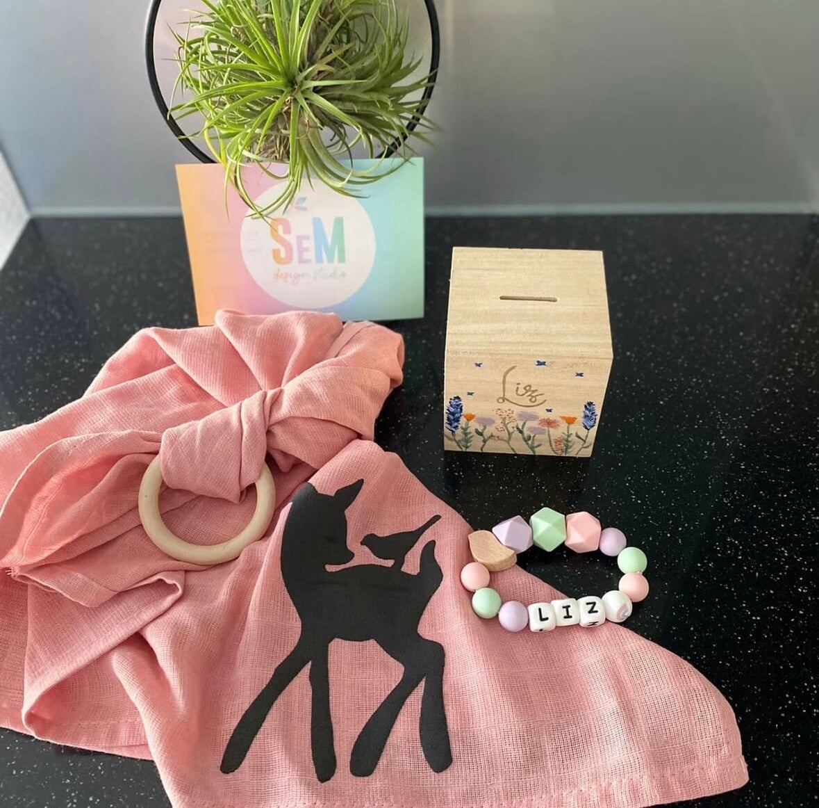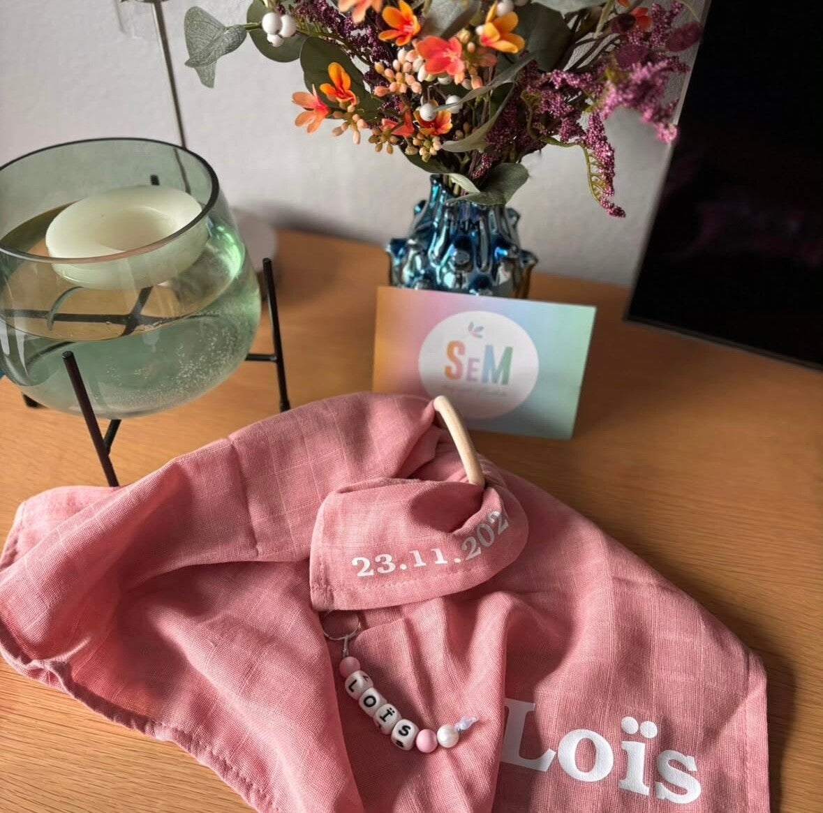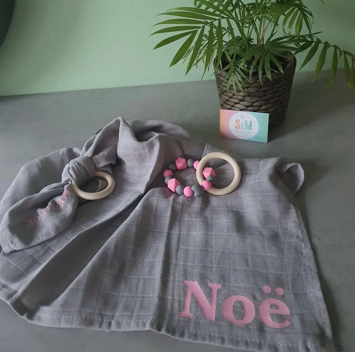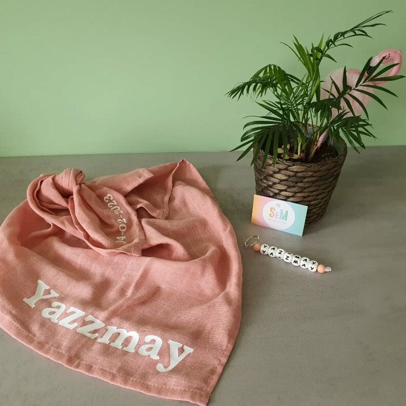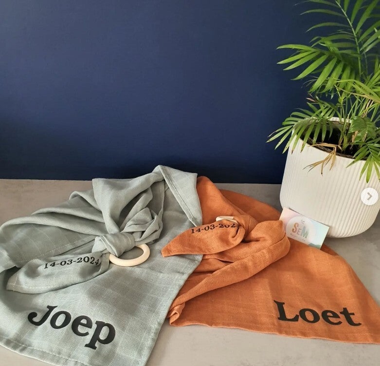 Gepersonaliseerde Hydrofiele doek met houten ring.